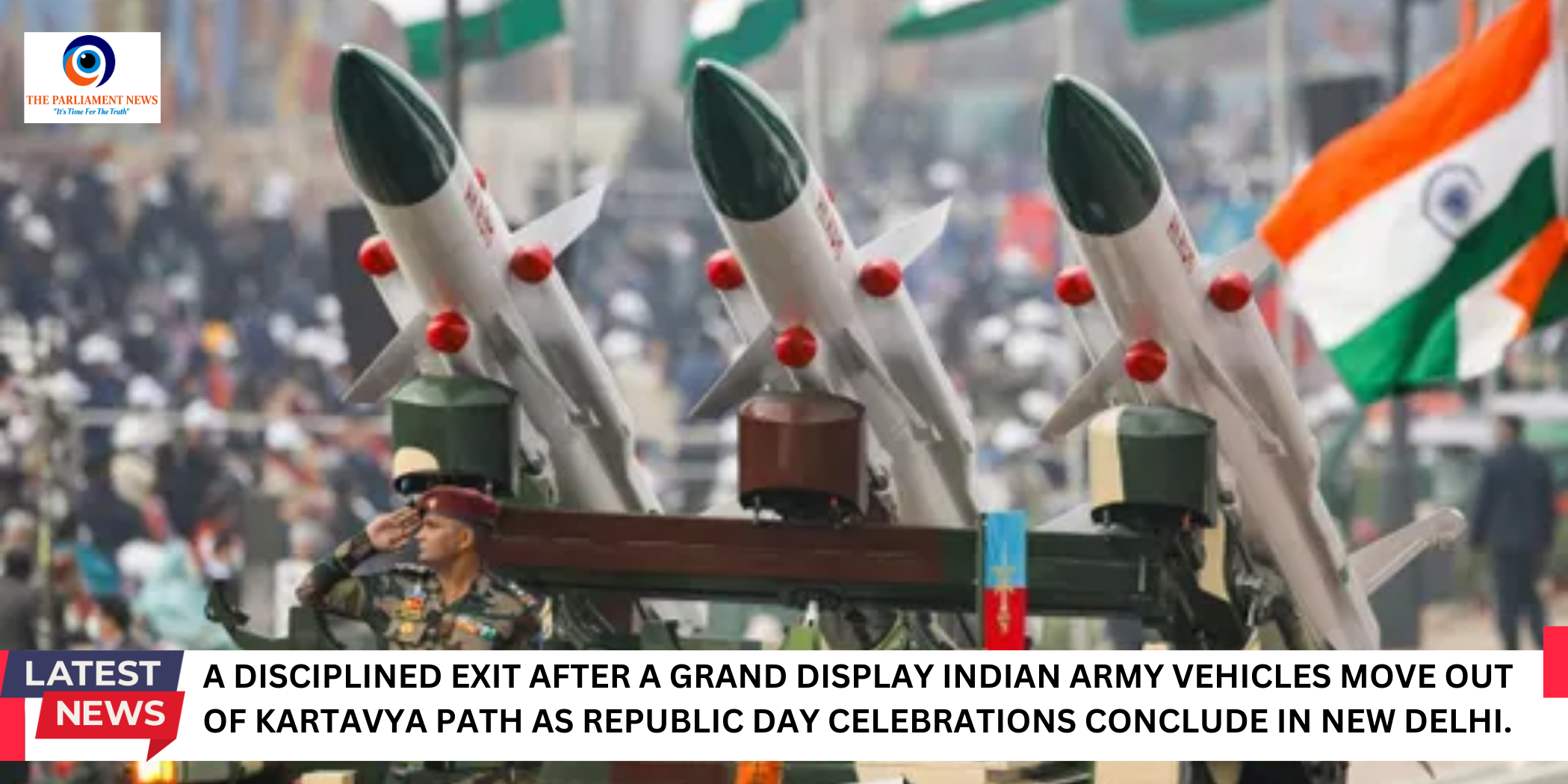 Indian Army vehicles exited Kartavya Path in a disciplined manner after the Republic Day parade, marking the formal conclusion of the national celebrations in New Delhi.