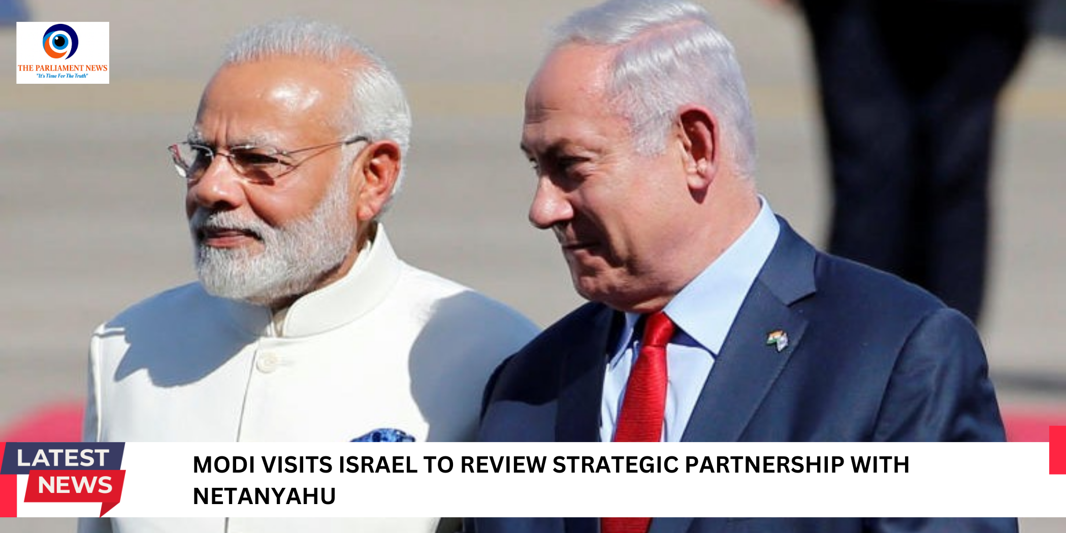 Prime Minister Narendra Modi landed in Israel on Wednesday for talks with his counterpart Benjamin Netanyahu aimed at reviewing the India–Israel Strategic Partnership and identifying new opportunities for cooperation across multiple sectors, including science and technology.