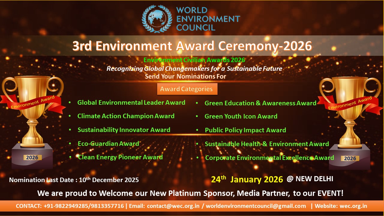 This announcement, shared from New Delhi by Prof. Ganesh Channa, Founder and President of WEC, marks the beginning of a new cycle of appreciation for environmental leadership. The award ceremony is scheduled to take place on January 24, 2026, bringing together some of the most influential environmental thinkers, practitioners, and innovators from India and across the world.